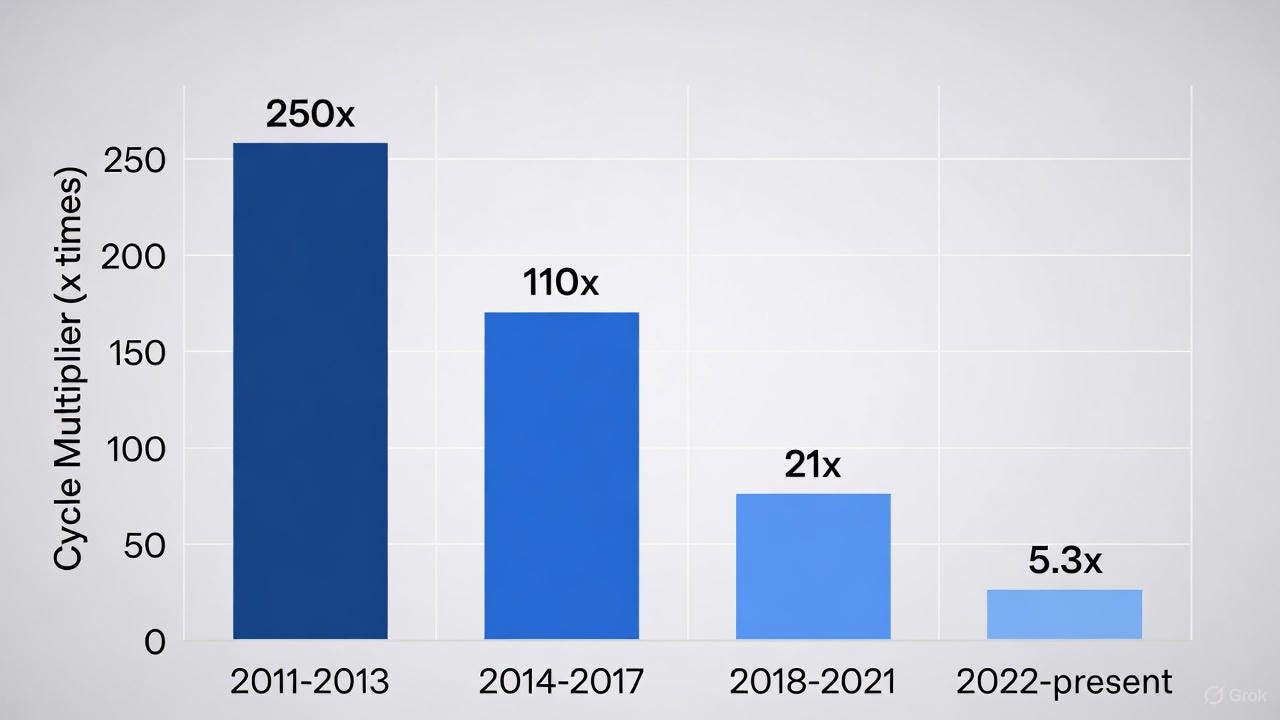 Empirical Evidence: Diminishing Cycle Multiples in Bitcoin